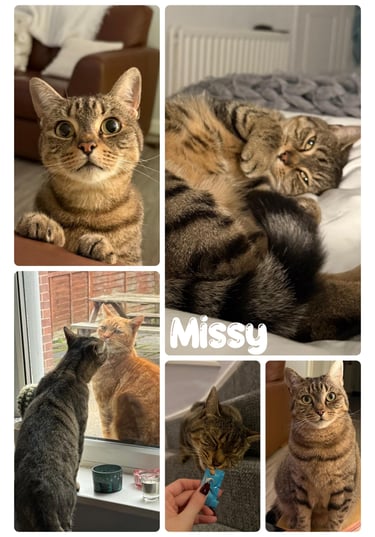 Missy loves to play and is a kitten at heart, she will make you laugh with her daily zoomies, she is very food motivated and will definitely let you know when itβs dinner time! πΎ